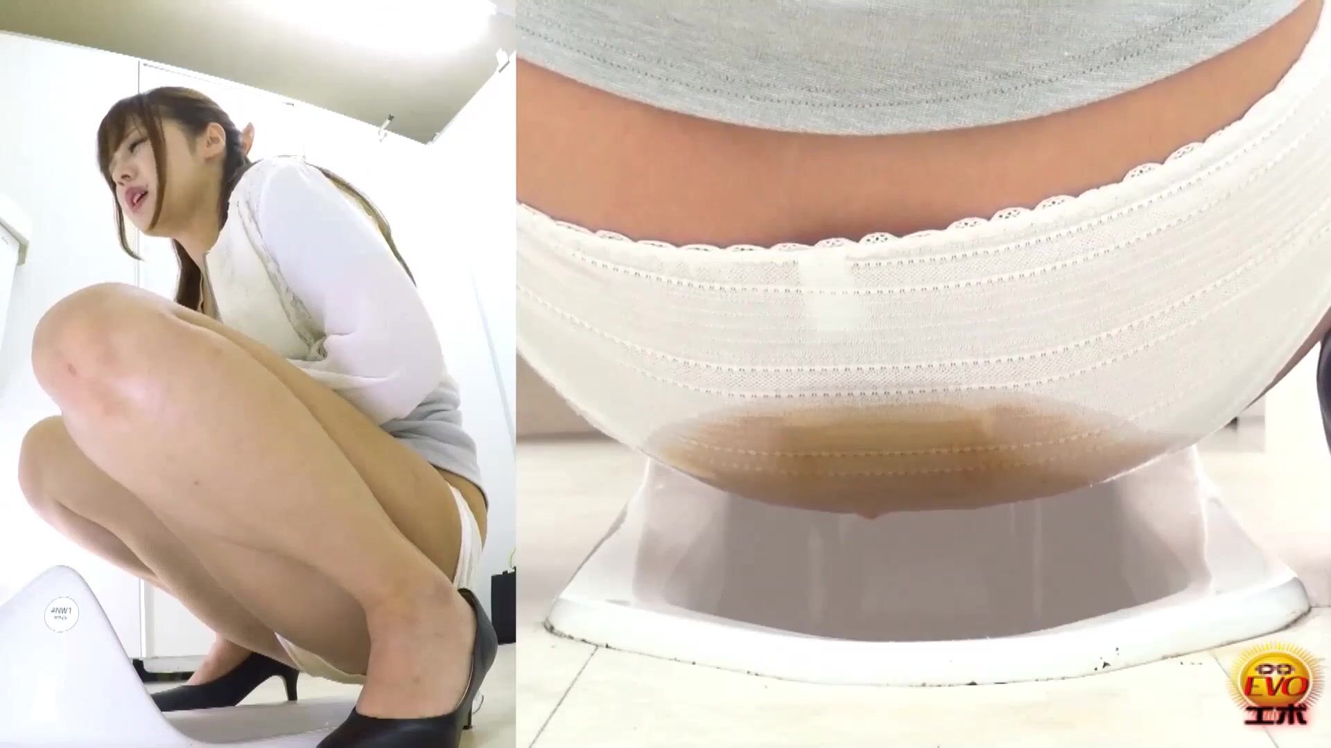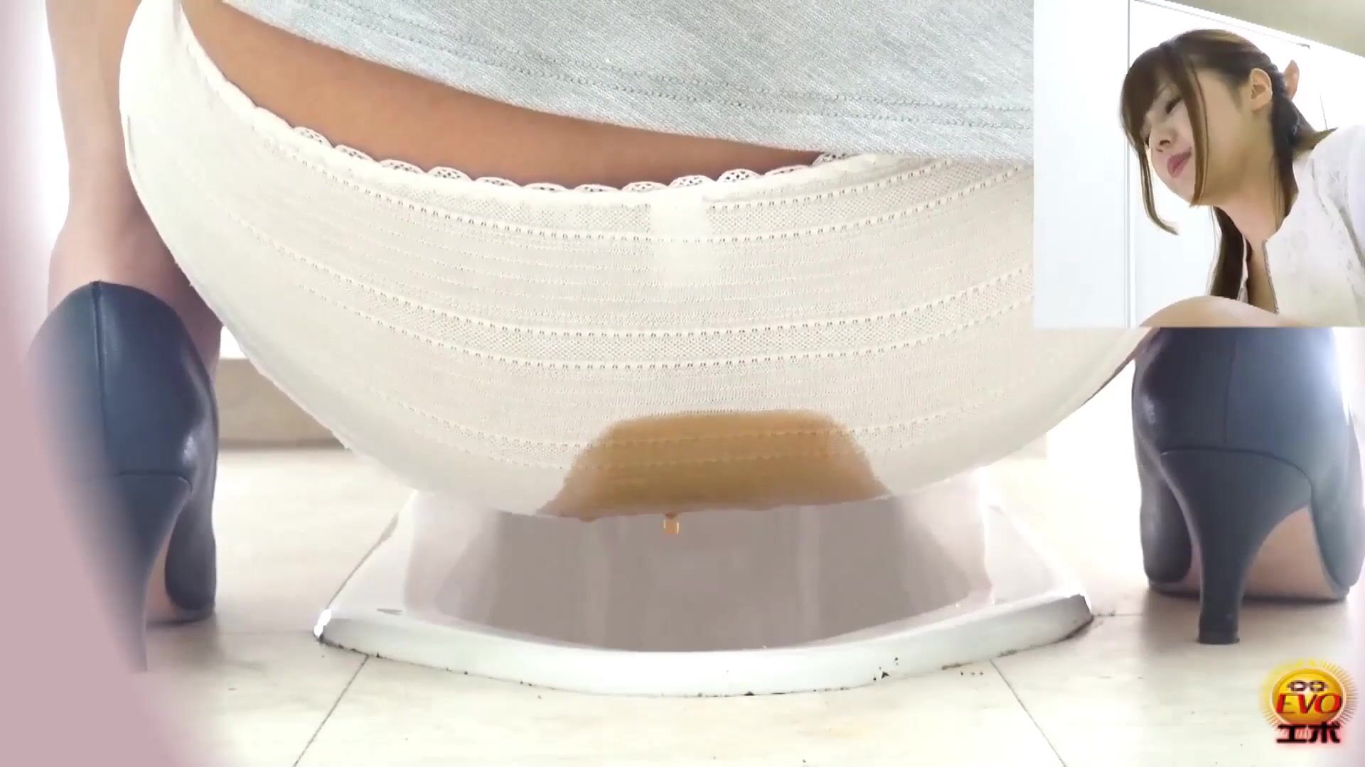 cute and sexy naked dark blonde crapping and peeing