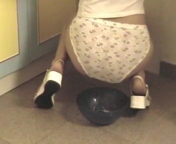Poop herself in the kitchen