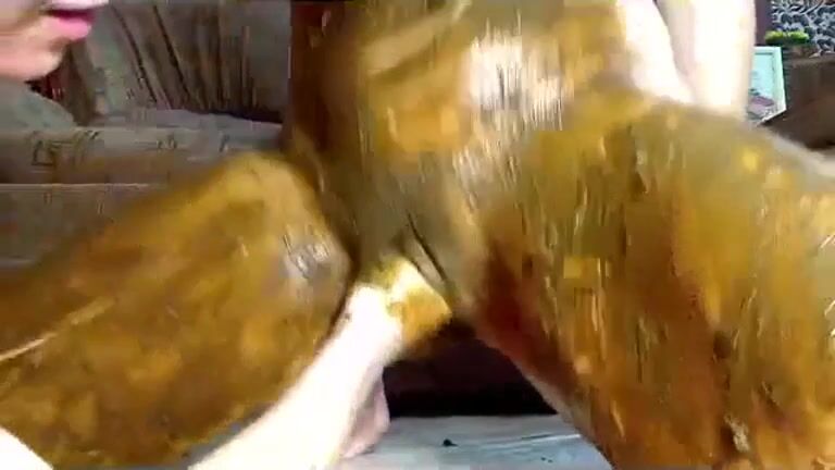 Girl shitting in the shower and smering it on body