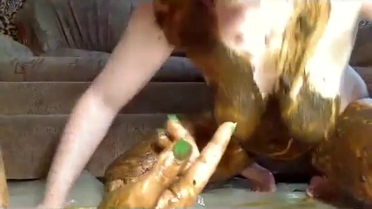 2 girlsl play with scat while fisting