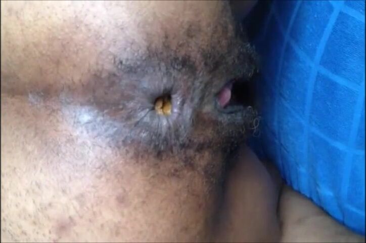 Hairy girl shitting an hard turd