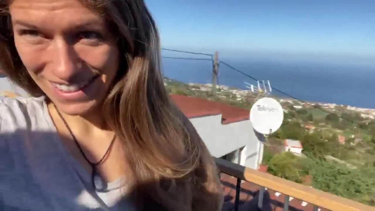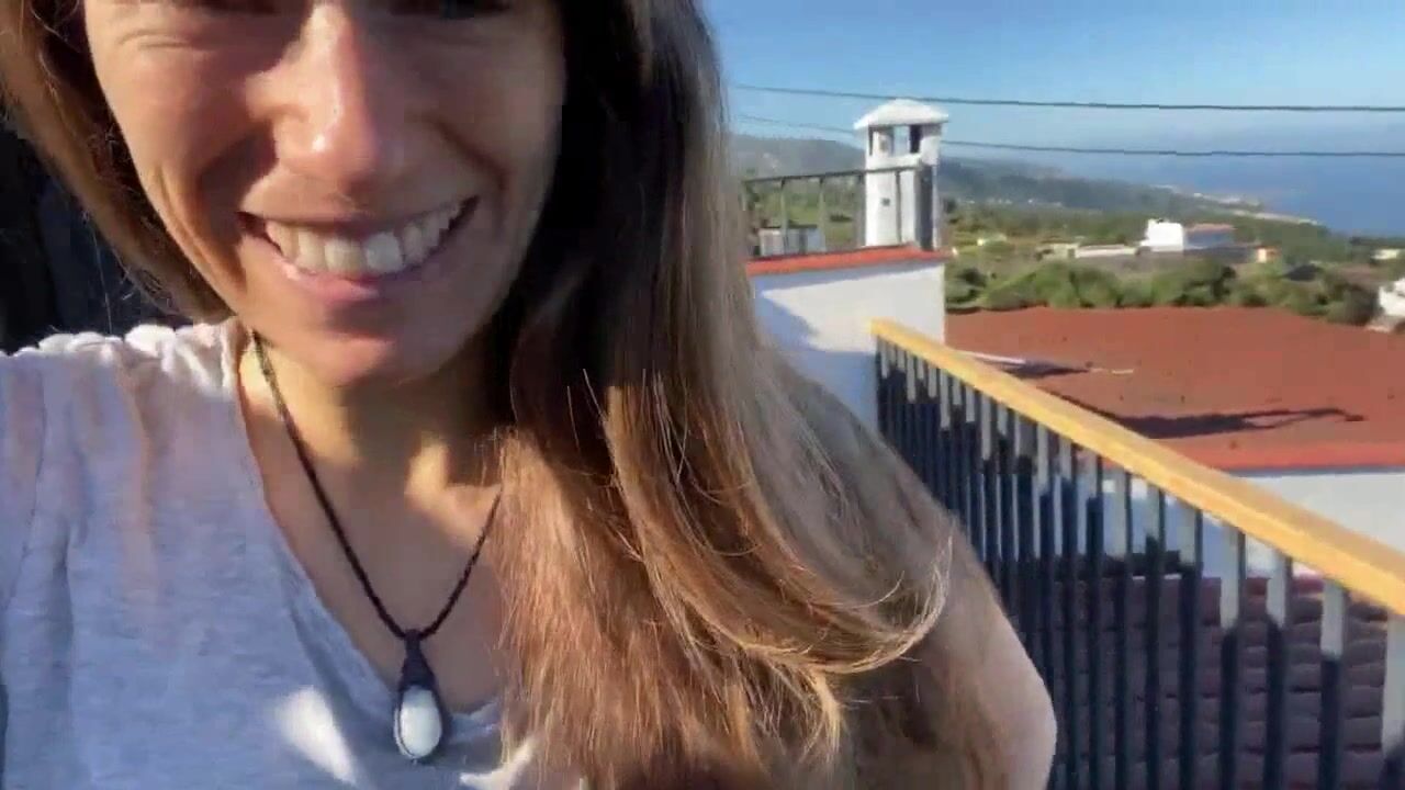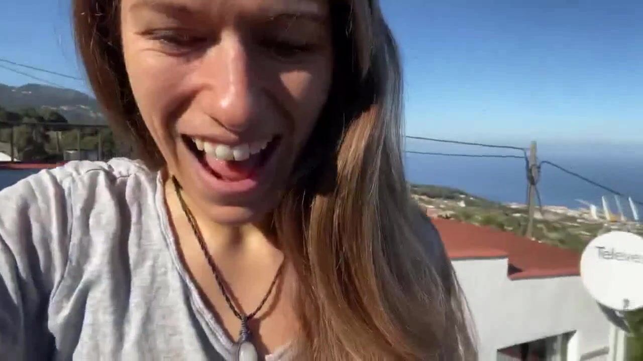 Woman Crazy Shit on Rooftop-Railing