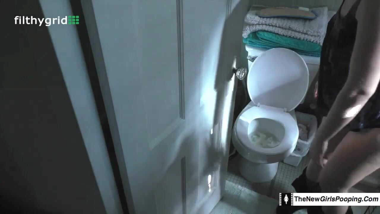 Hot college girl poops on toilet