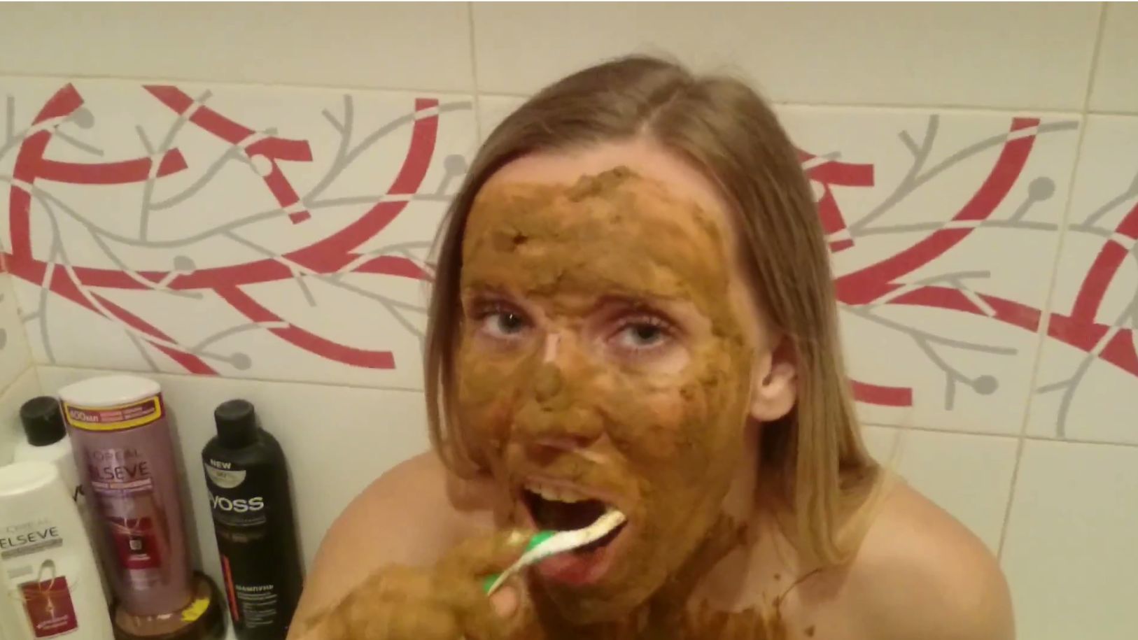 Blonde Brushes Teeth With Shit