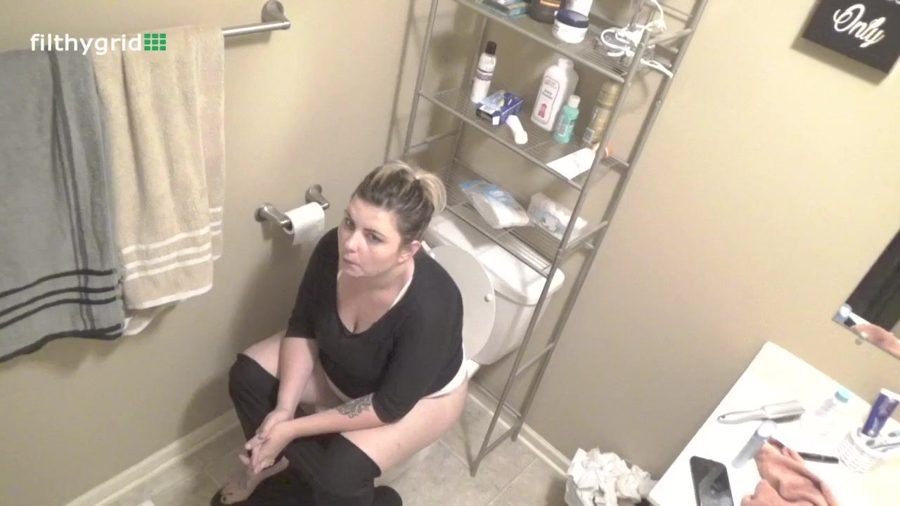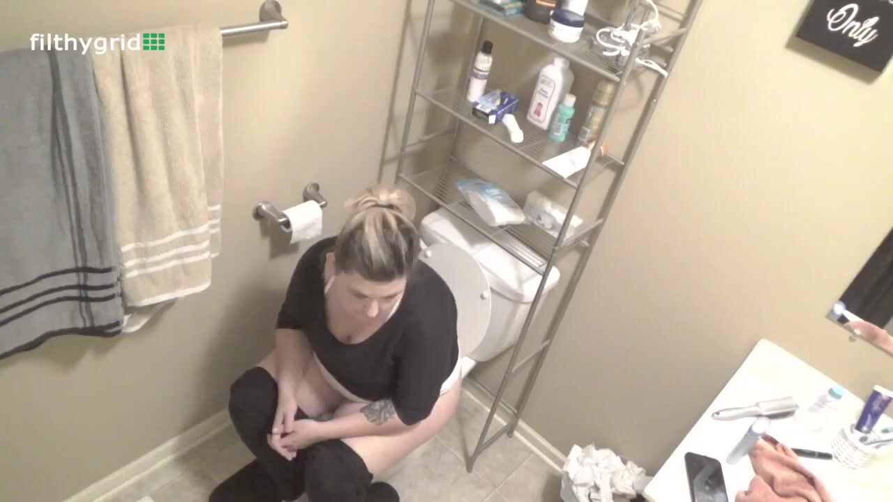 White girl poops on toilet