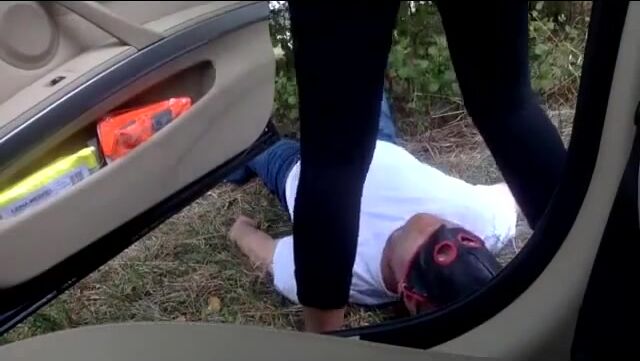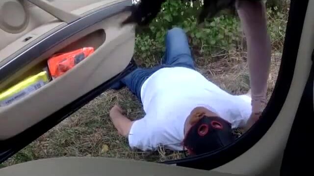 German babe uses human toilet on the side of the road