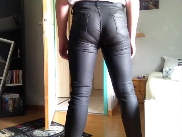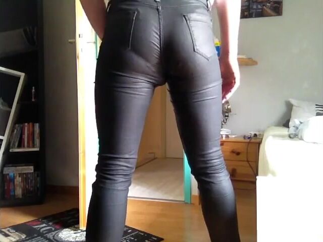 mature leather pants pooping