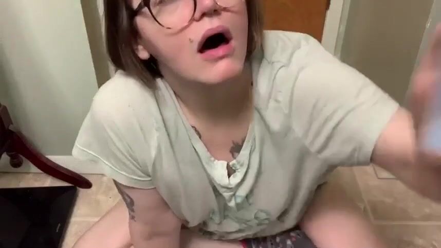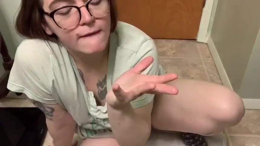 Girl in the bathroom masturbating and tasting shit