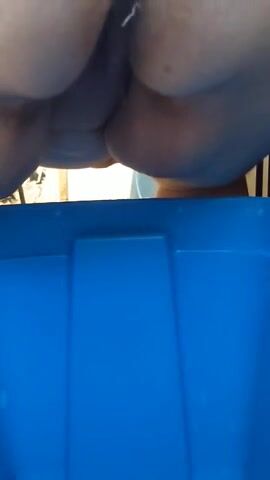 Ebony shitting in tub