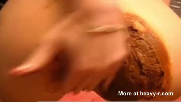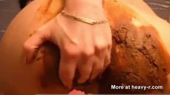 Brunette milf smearing poop on her entire ass - video 2