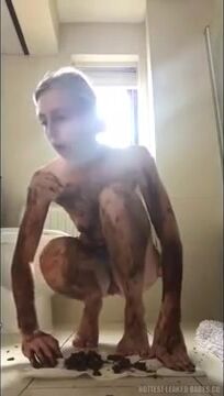 young girl tastes her shit