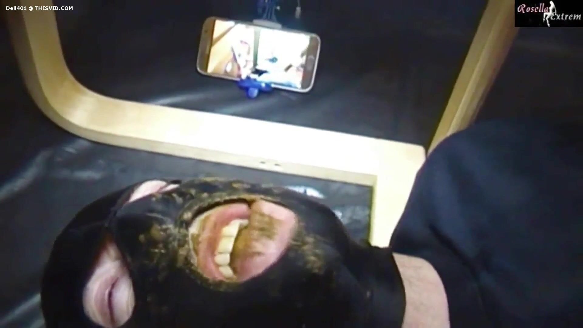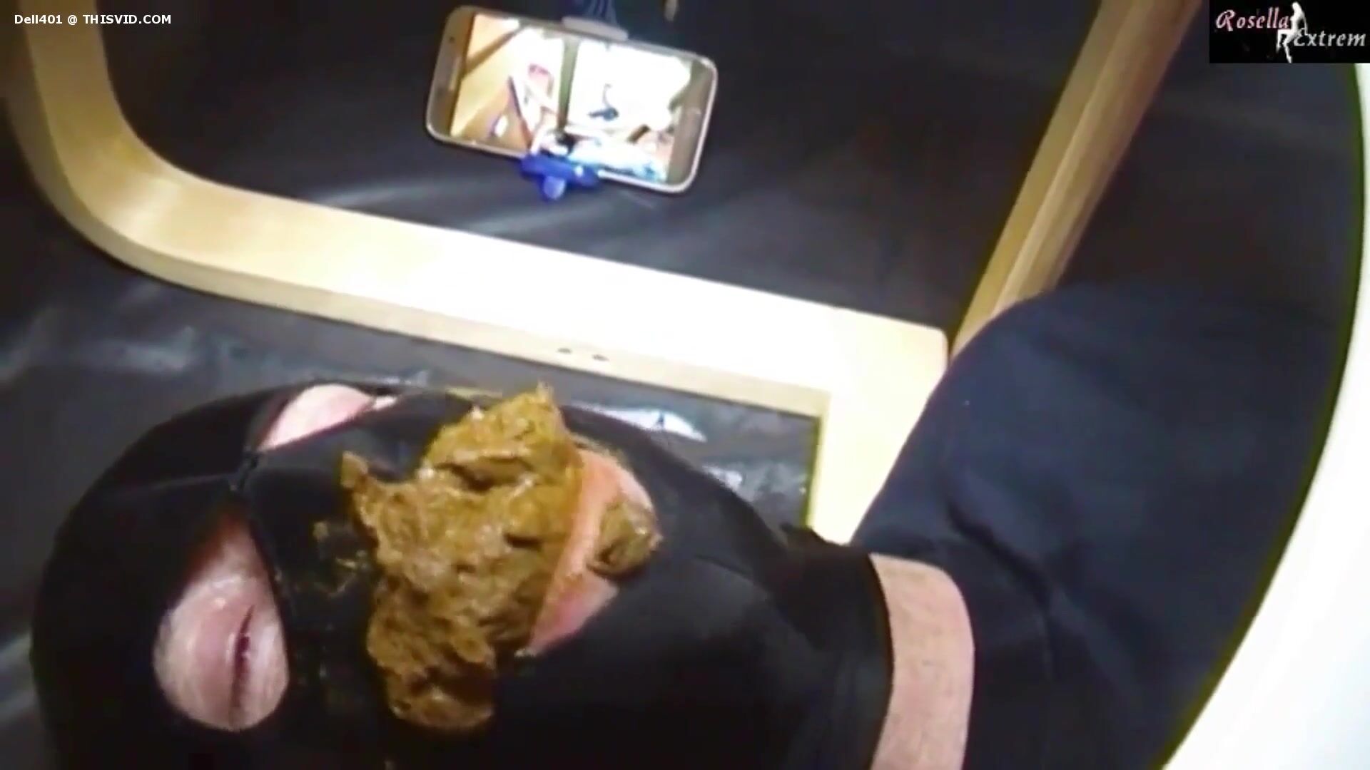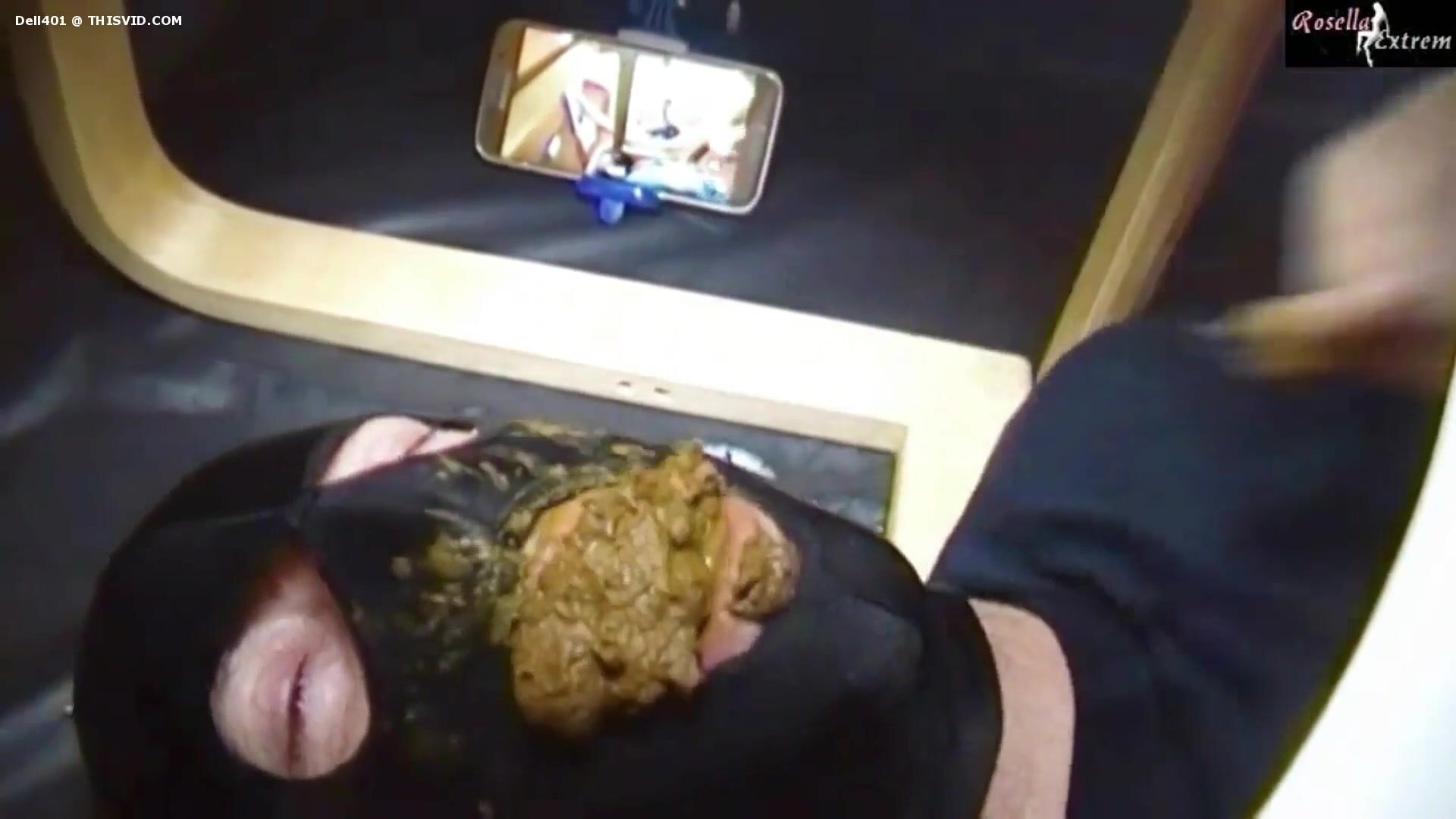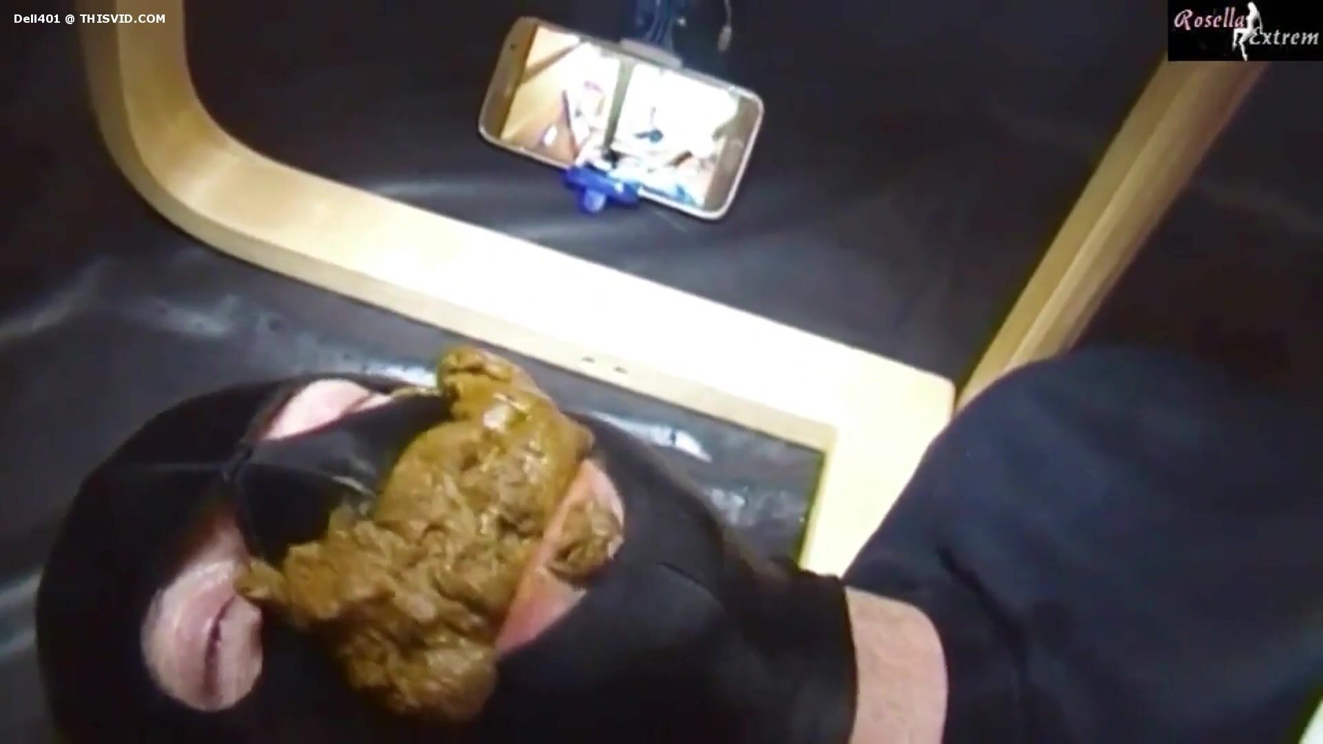 Lucky slave eating his mistress shit as breakfast