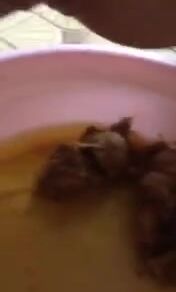 Lucky slave eating his mistress shit as breakfast