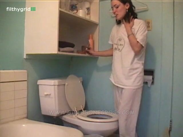 girl pooping on the toilet