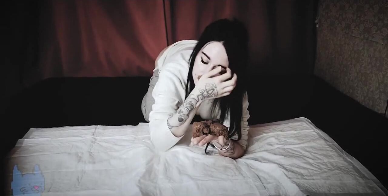 Masked blonde eating her own shit