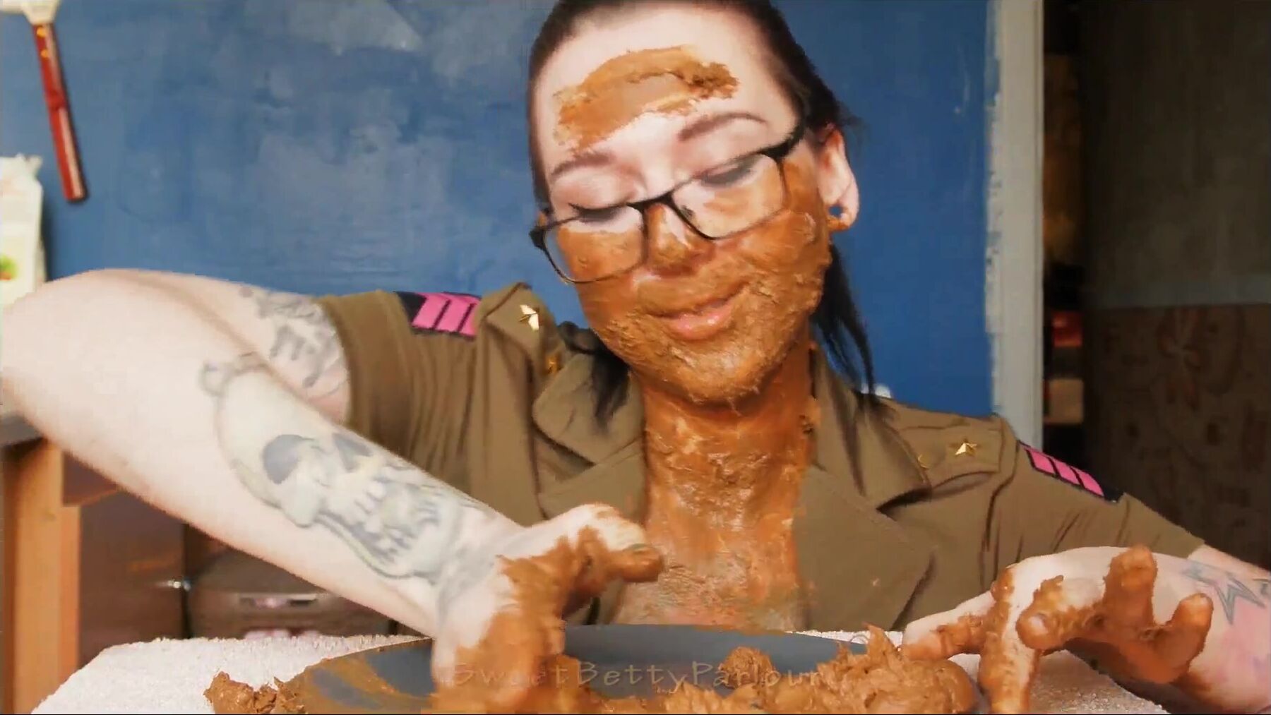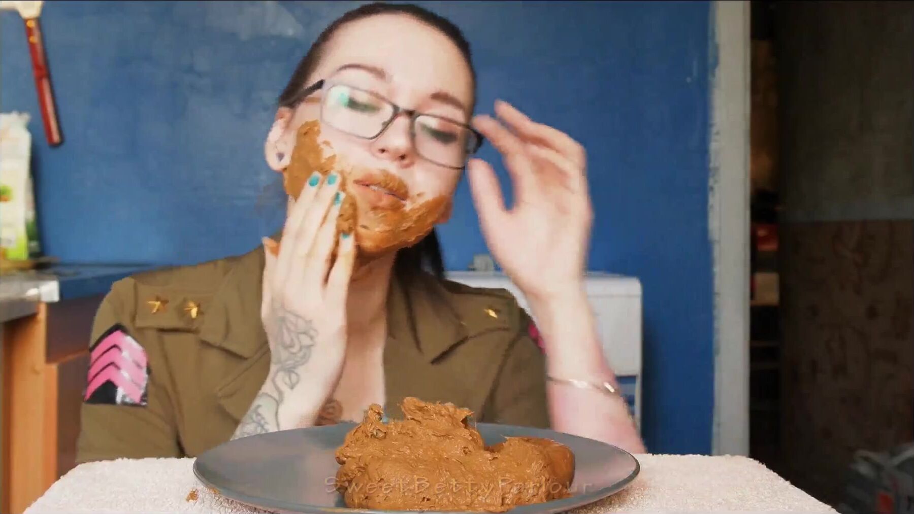 shit on her face