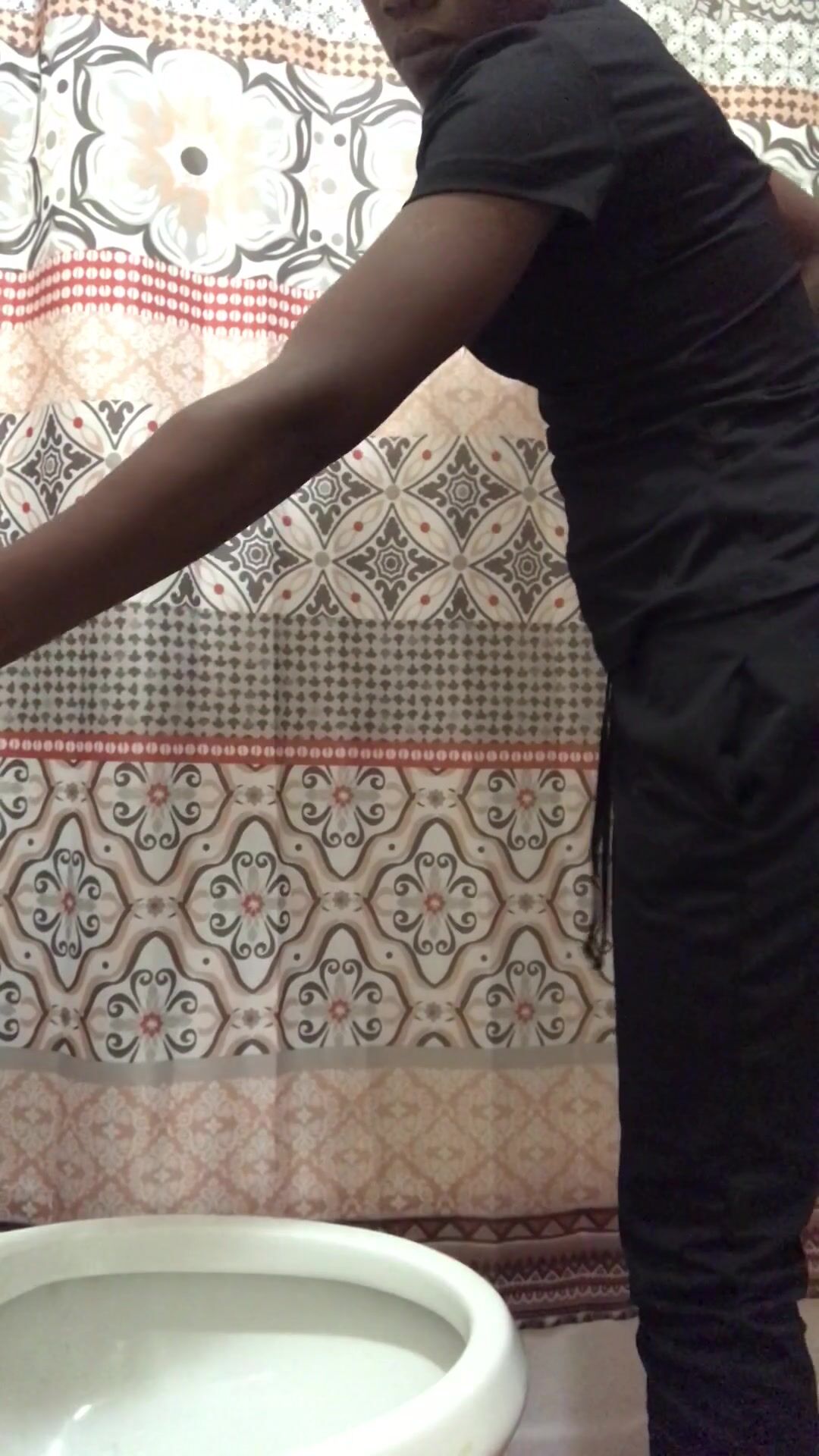 Ebony squats on toilet seat and shit
