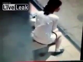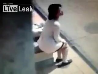 Dirty Girl Lifts Skirt and Shits at Bus Stop
