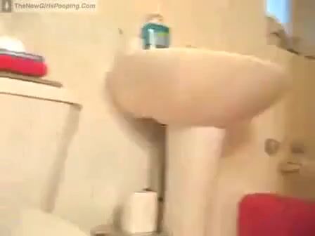 Hot thin babe shits on her floor