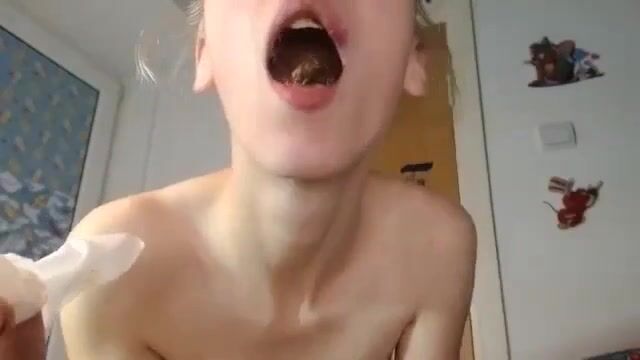 Dirty girl eats her shit and drinks her vomit