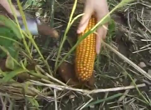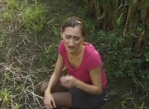 woman poop in corn field and wipe with corn