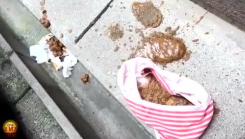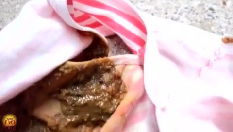 Japanese girl pooping and wipe with pads