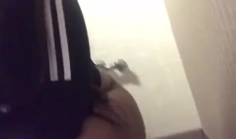Black girl girl poops and talks in public toilet
