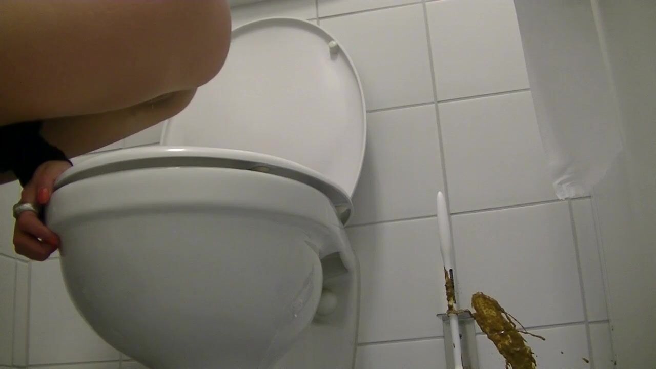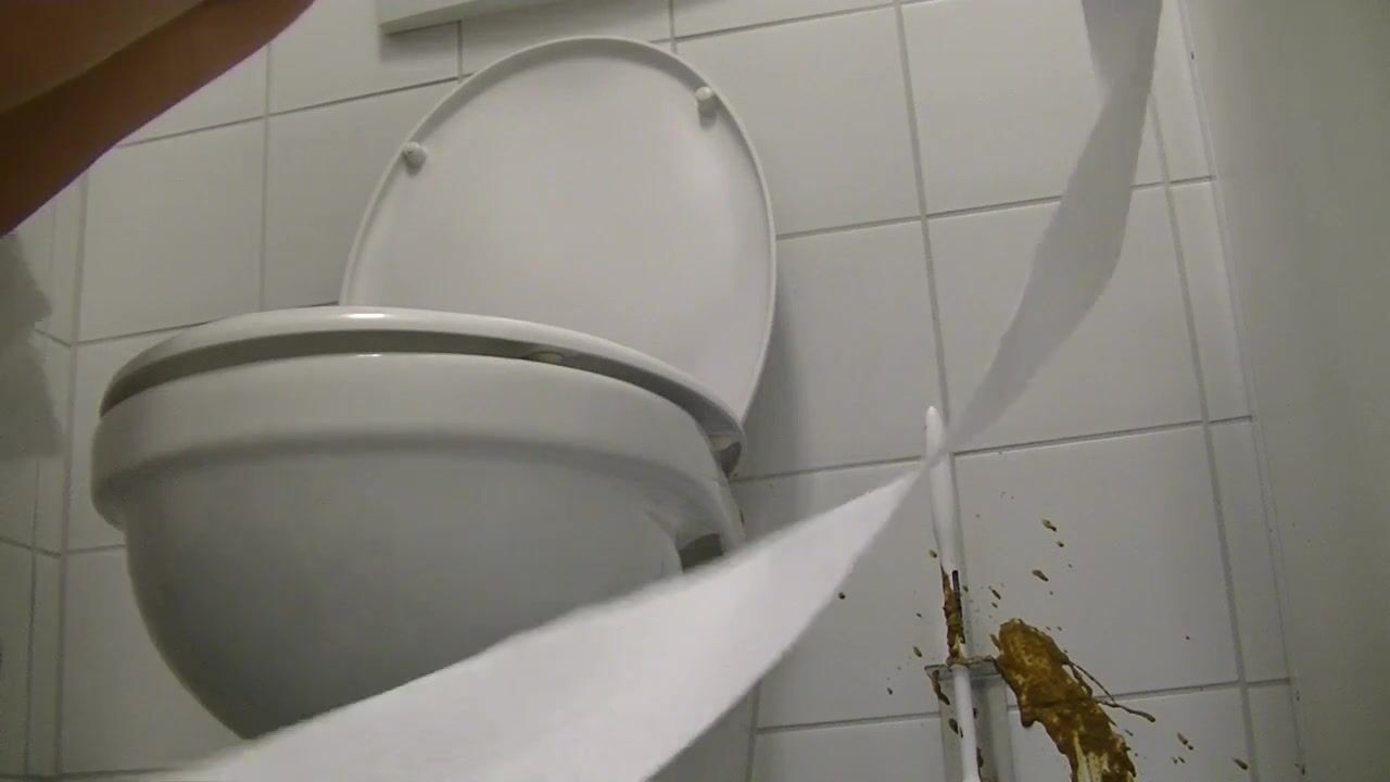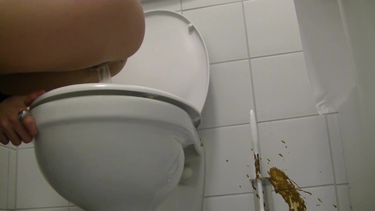 Girl diarrhea on floor of gas station toilet