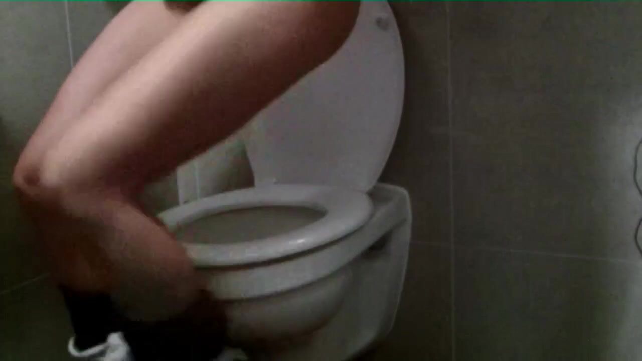 Girl smearing scat on airport toilet seat