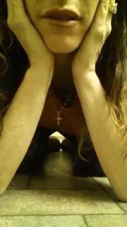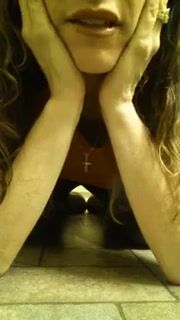 Girl open wide legs and shitting on the toilet floor