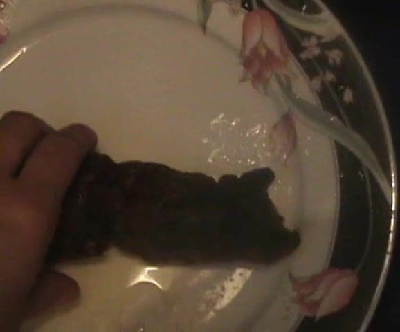 Lucky slave eating his mistress shit as breakfast