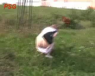 Cute Brunette Pees and Poops in a Park