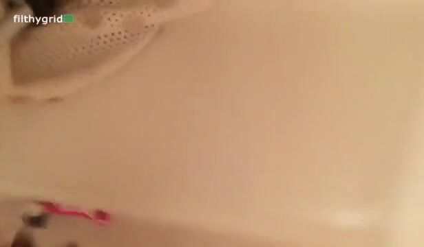 Cute known girl is pooping in the bathtub