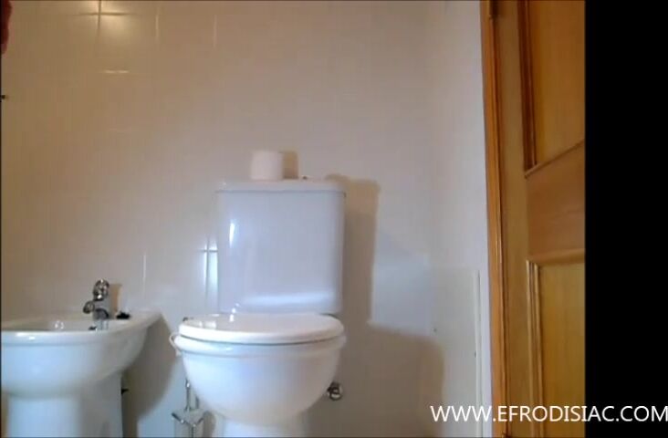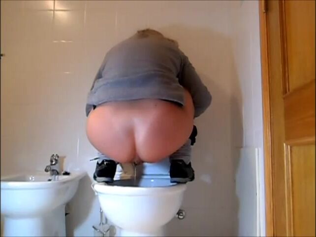 Italian girl is pooping reverse on top of the toilet