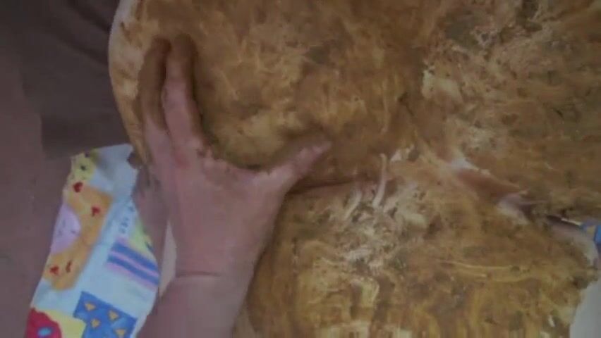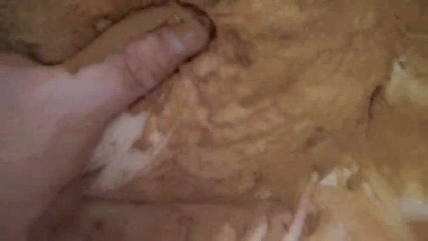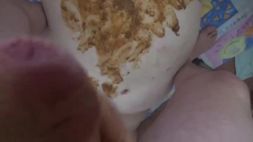 Guy smears shit over his cock and his chubby girlfriend
