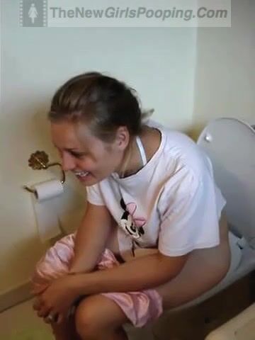 Girl pooping and straining on toilet