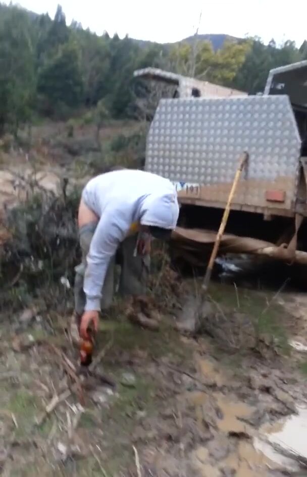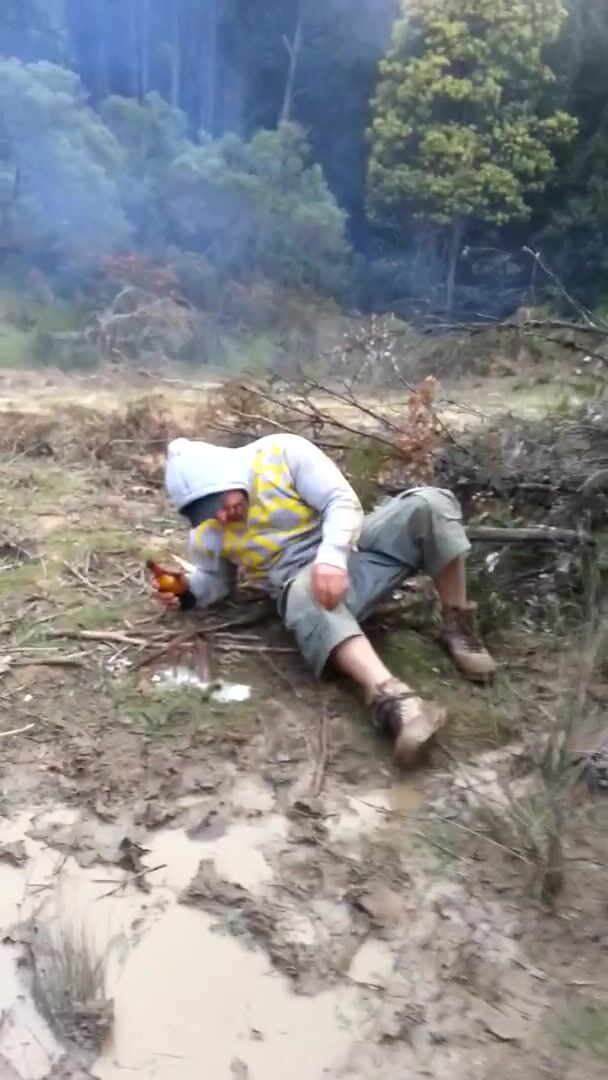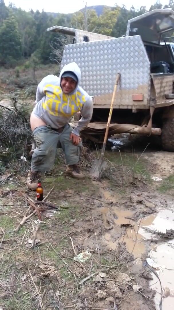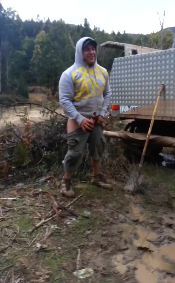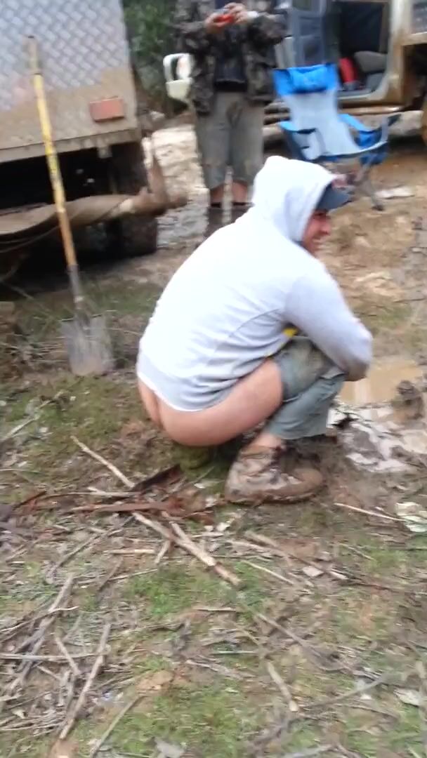 Trucker Takes a Shit Outdoors in Front of Mates