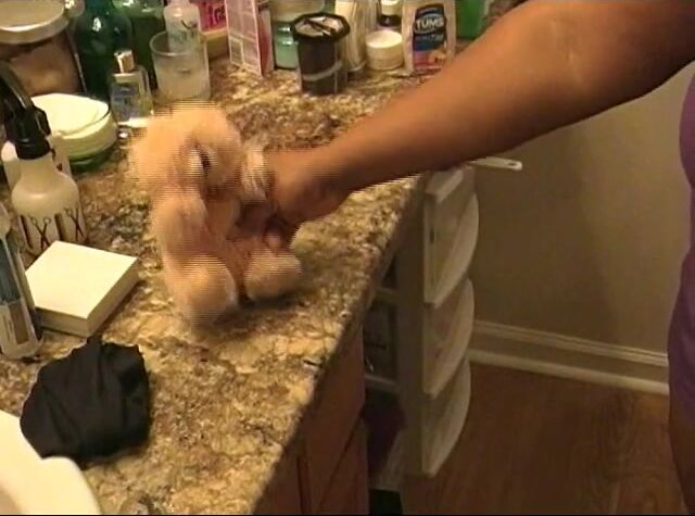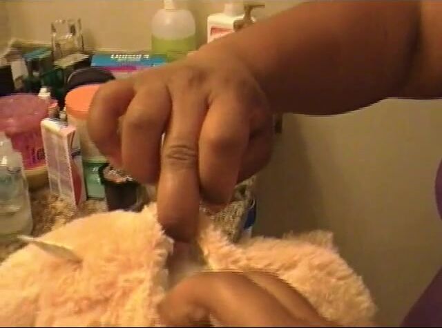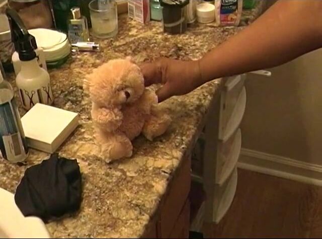 She uses her big teddy as a toilet