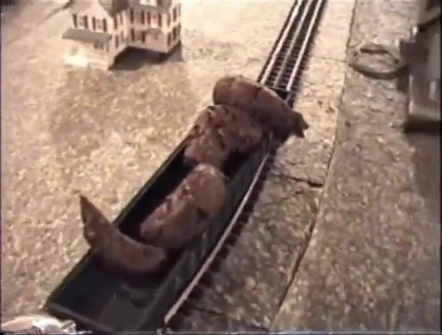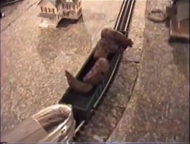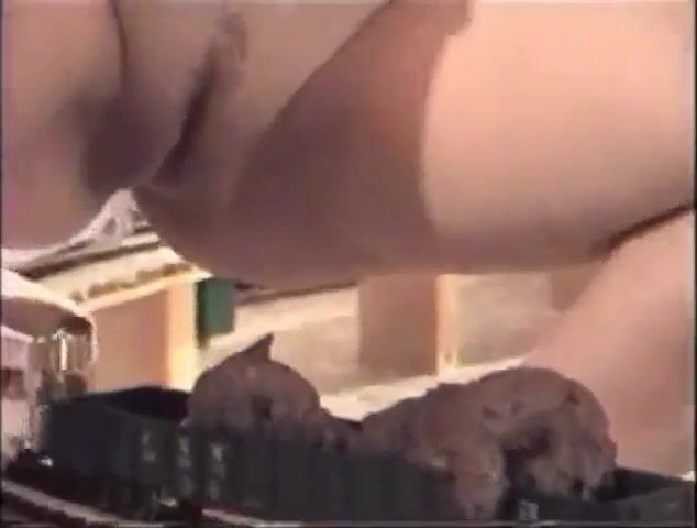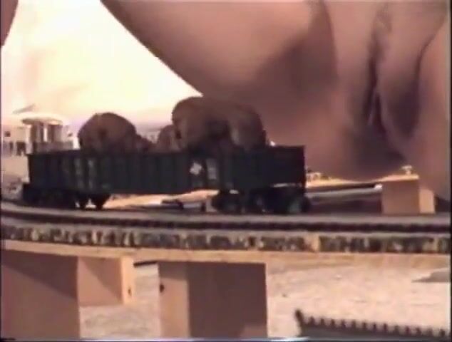 Girl shitting on a model train