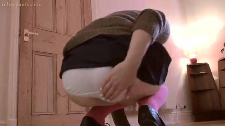 Cute girl pooping in white panty