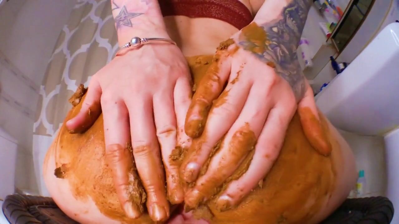 Girl shitting in the shower and smering it on body