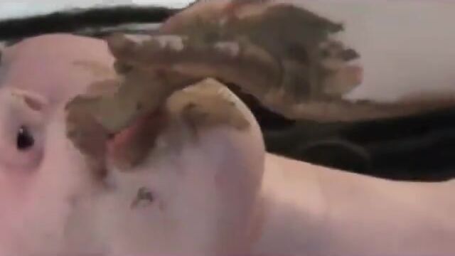 Hot blonde girl pooping and smear her shit on body in bed(No Sound)