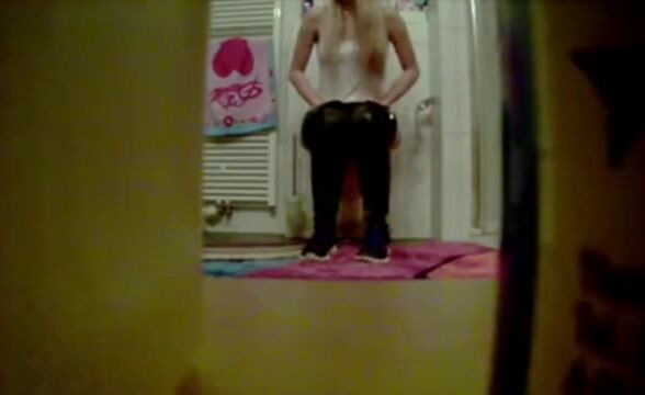gorgeous brunette craps and pees - video 3