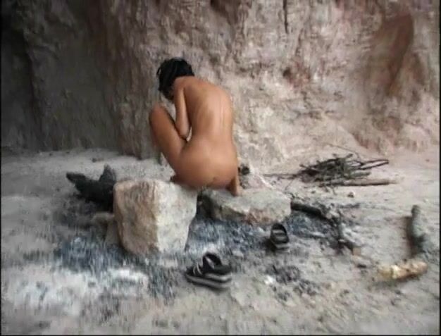 Brown girl undresses to release liquid poop