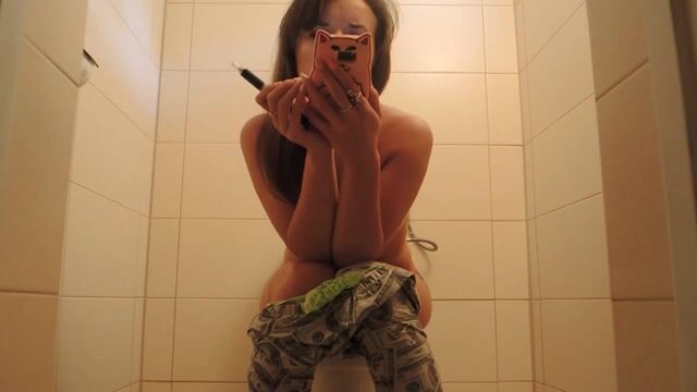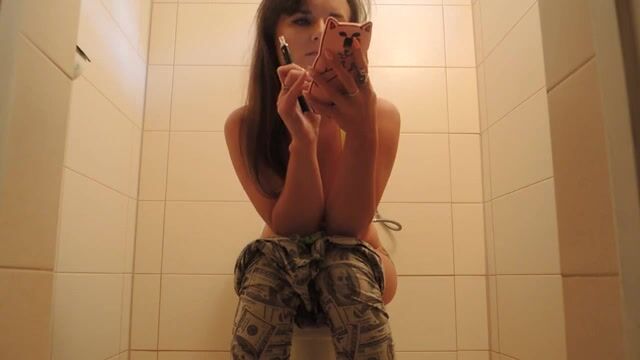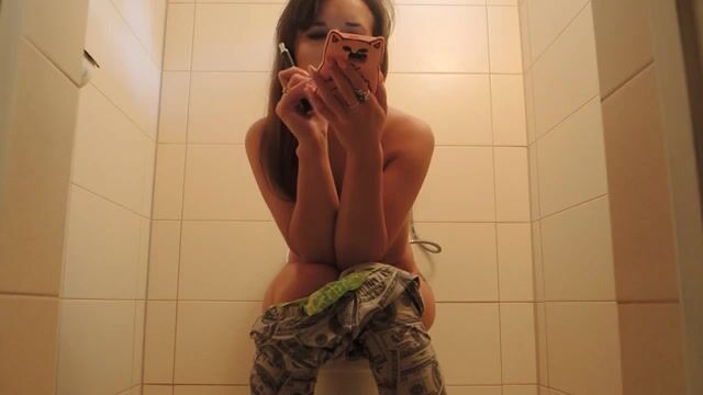 Sexy girl toilet poop big tits