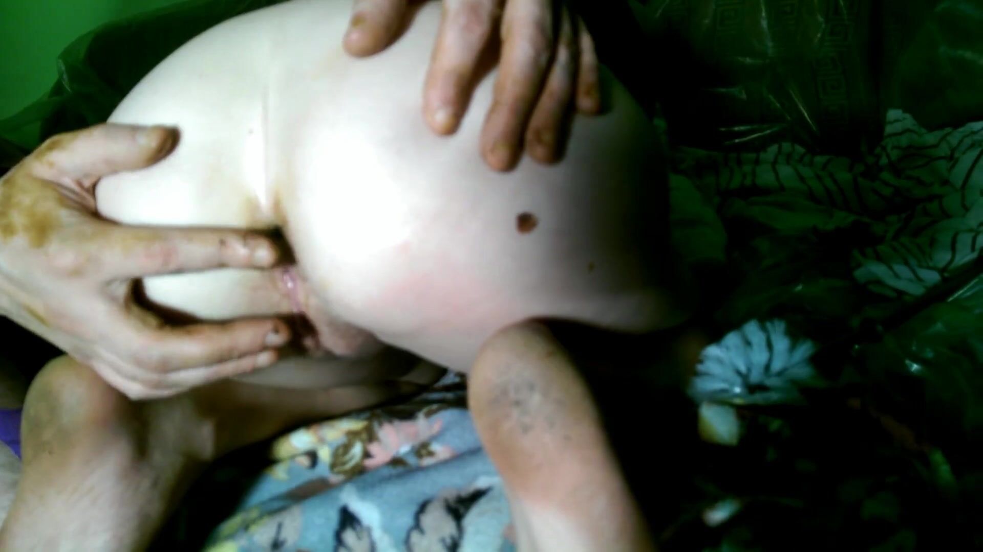 Mature bbw shitting and smear it on feet