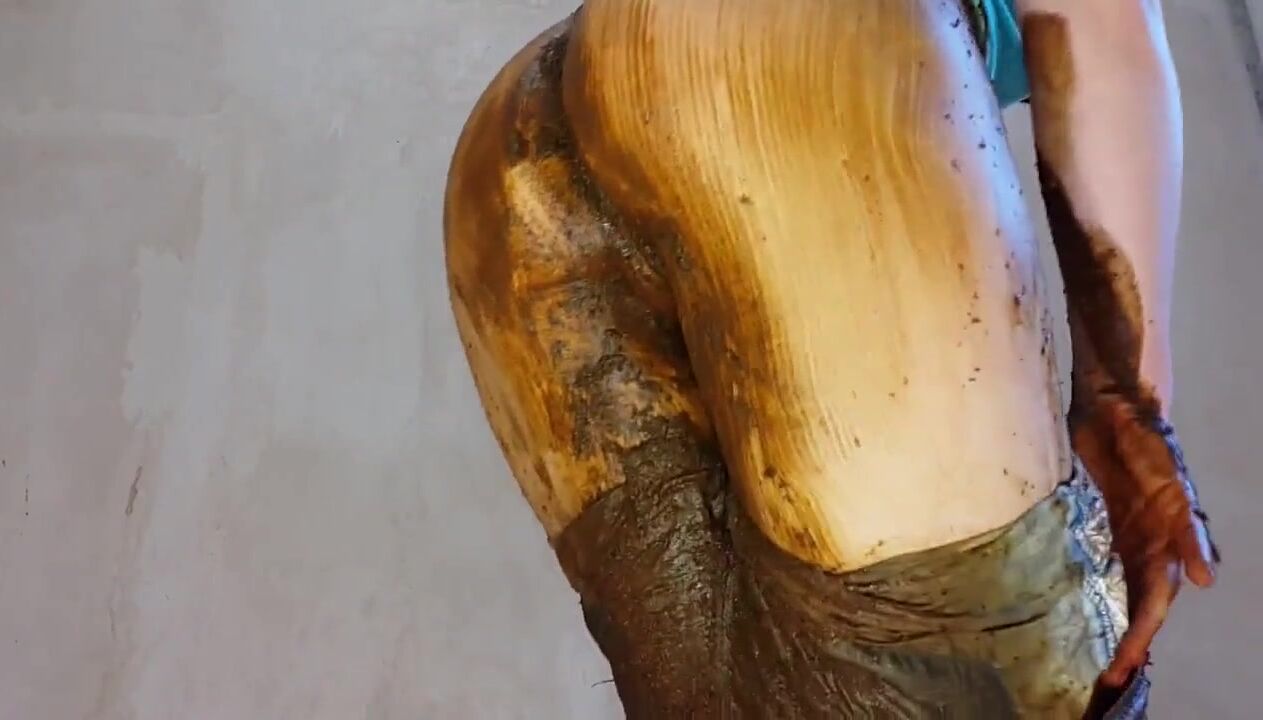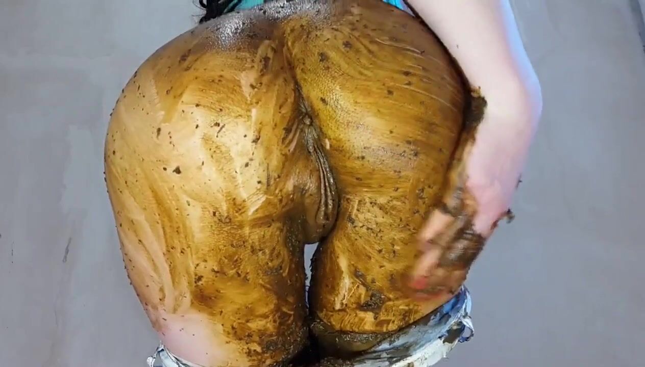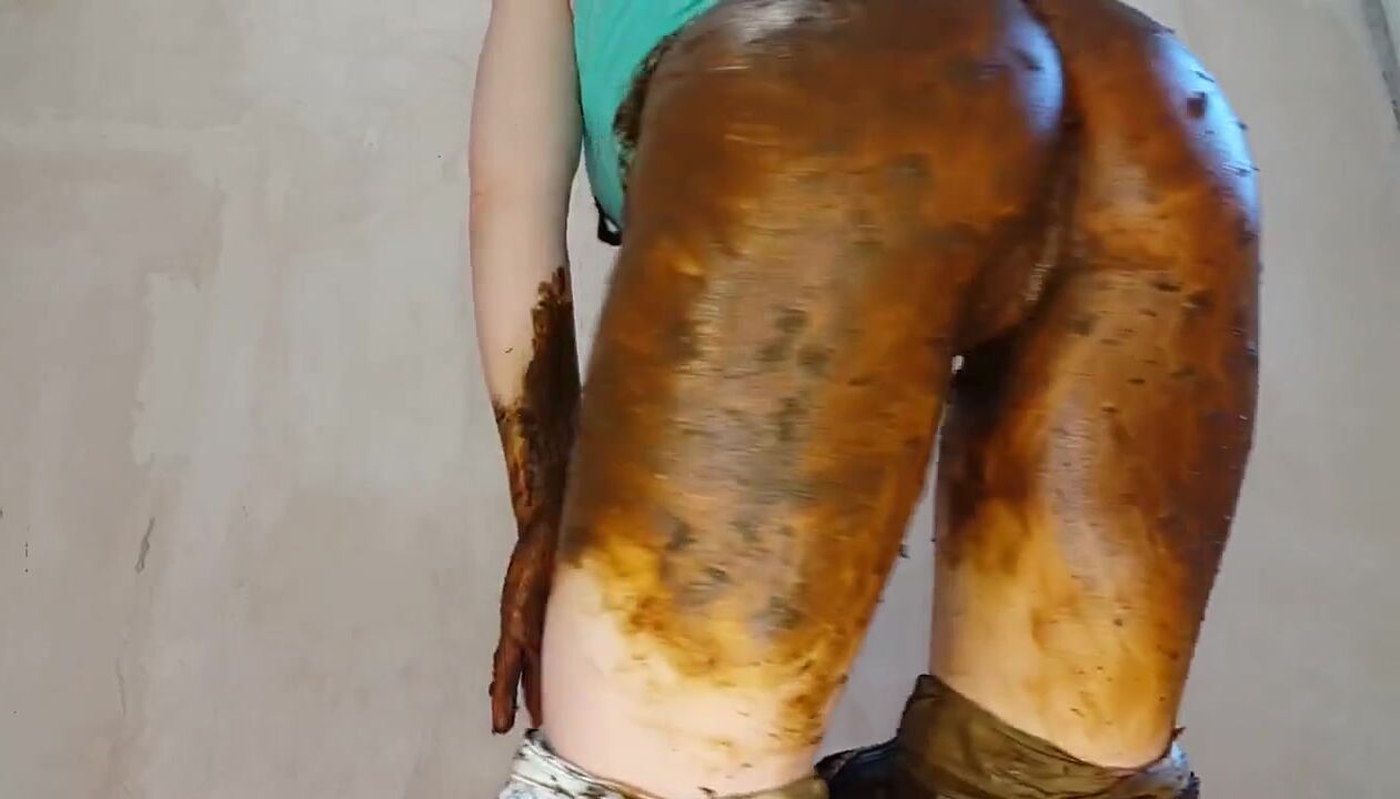 woman shits jeans and smears, puts on a show