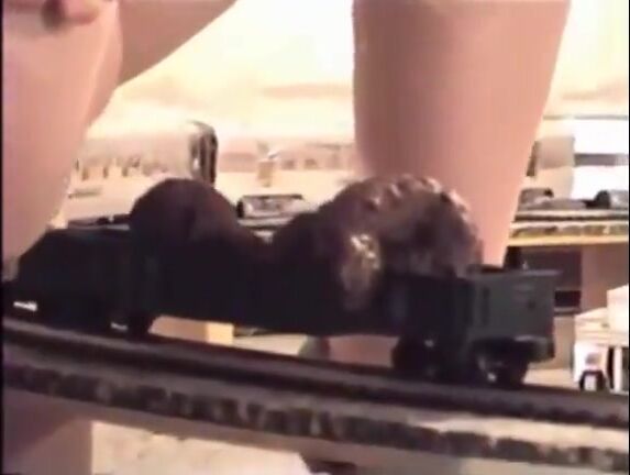 She poops on a toy train