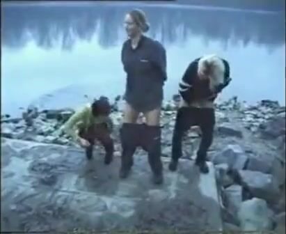 3 Girls Shitting together outdoors