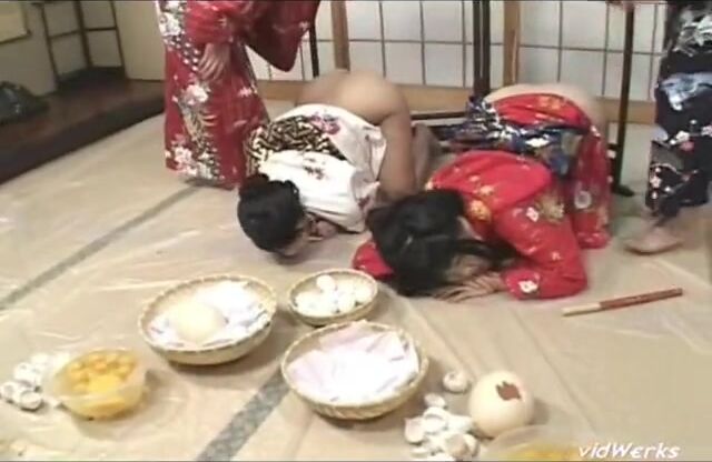 Two geisha women in lesbian scat play - part 1